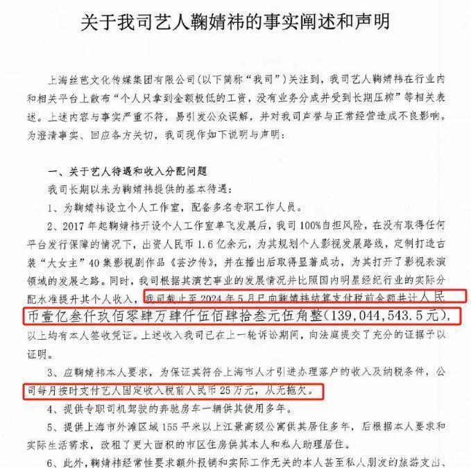 四丑闻真正发酵,是从鞠婧祎和公司的纠纷开始的。公司与艺人撕破脸,账目、合同、待遇全被摆上台面。1.3亿的投入、每月25万的额外支出,被写进声明。